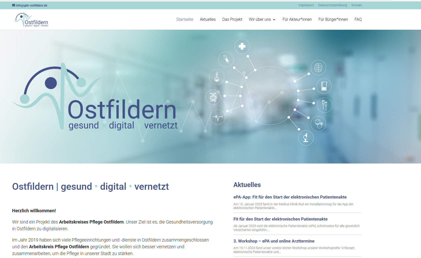 2023 startete das Projekt gesund.digital.vernetzt in Ostfildern, im Süden Stuttgarts. Vorausgegangen war ein Wettbewerbsgewinn des Arbeitskreises Pflege Ostfildern mit der Kampagne „Wir! Für eine zukunftsfähige Pflege in Ostfildern“. Diese wurde vom Ministerium für Soziales, Gesundheit und Integration Baden-Württemberg in einem Ideenwettbewerb ausgezeichnet.